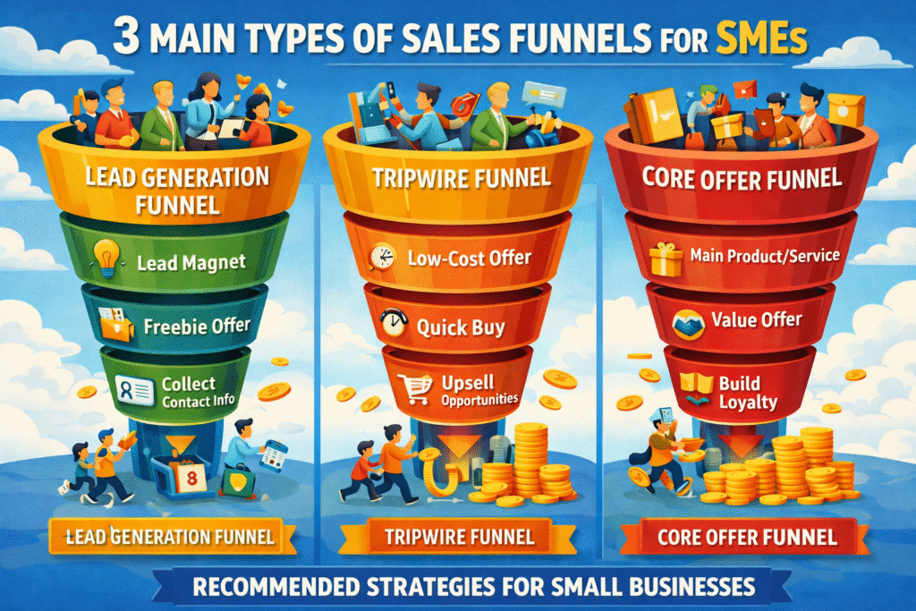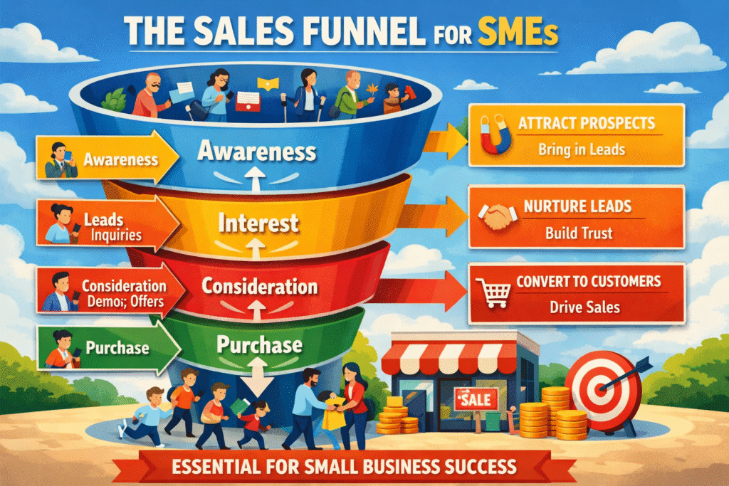 Marketing for SMEs is challenging. With limited budgets and numerous tasks, you need a focused strategy to attract and convert customers. That is where sales funnels come into play. They guide potential clients from initial curiosity to making a purchase.