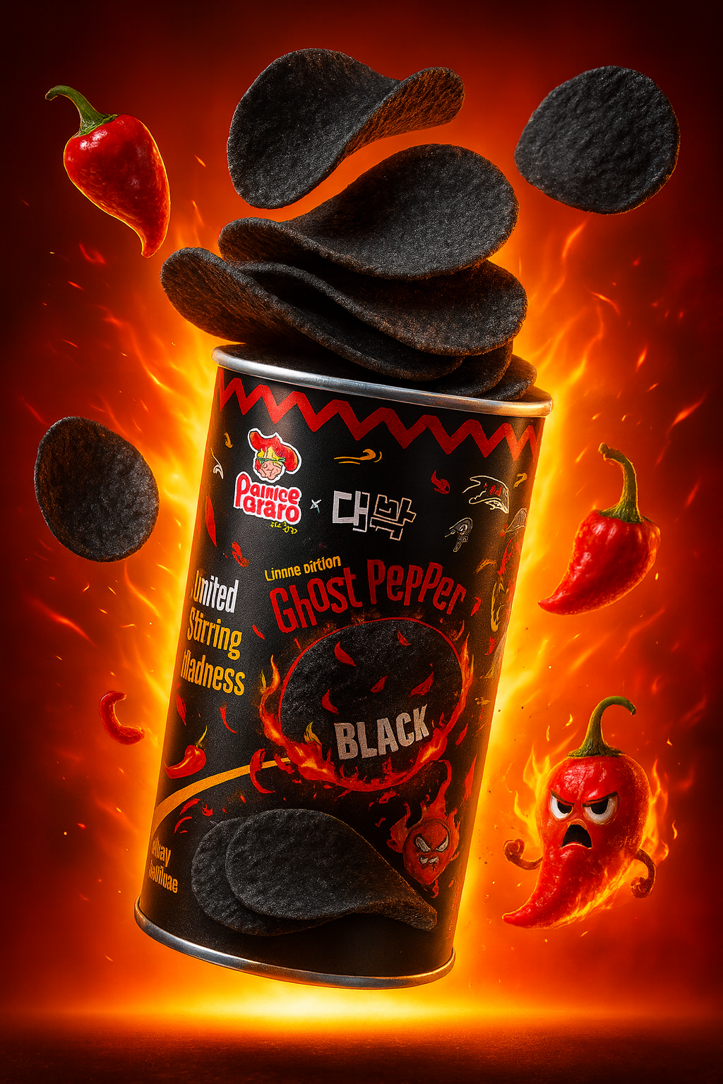 Mood & Tone: Intense, explosive, fiery, fun and slightly over-the-top, emphasizing extreme heat and bold flavor.