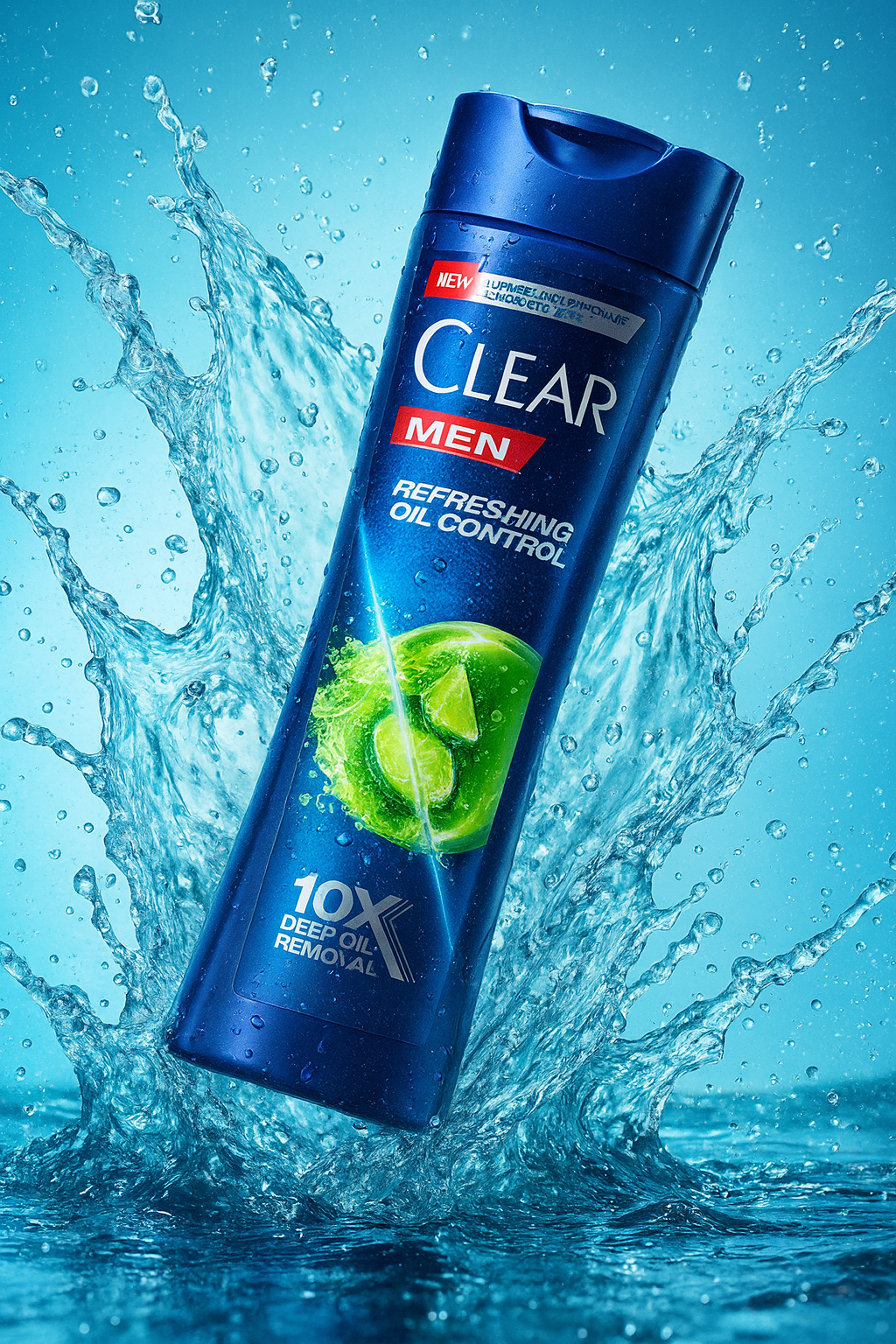 Post-processing: strong clarity/micro-contrast, crisp sharpening, selective dodge/burn on splash edges, cool color grade toward cyan, retain bright neon-lime, add slight vignette, remove any stray bubbles on the product