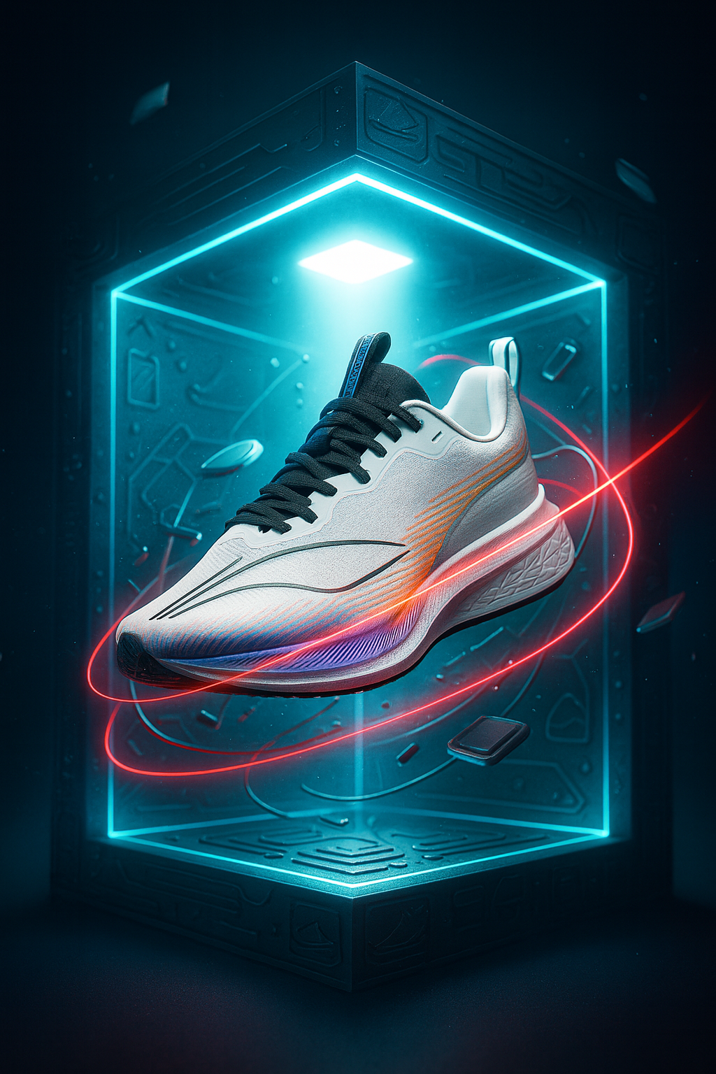 Create a Hyper-real commercial product photo featuring a [insert product type: e.g., perfume bottle, skincare item, watch, or jewelry] with sci-fi showroom vibes, bold, sleek, energetic, slightly surreal, emphasis on premium craftsmanship and innovation.