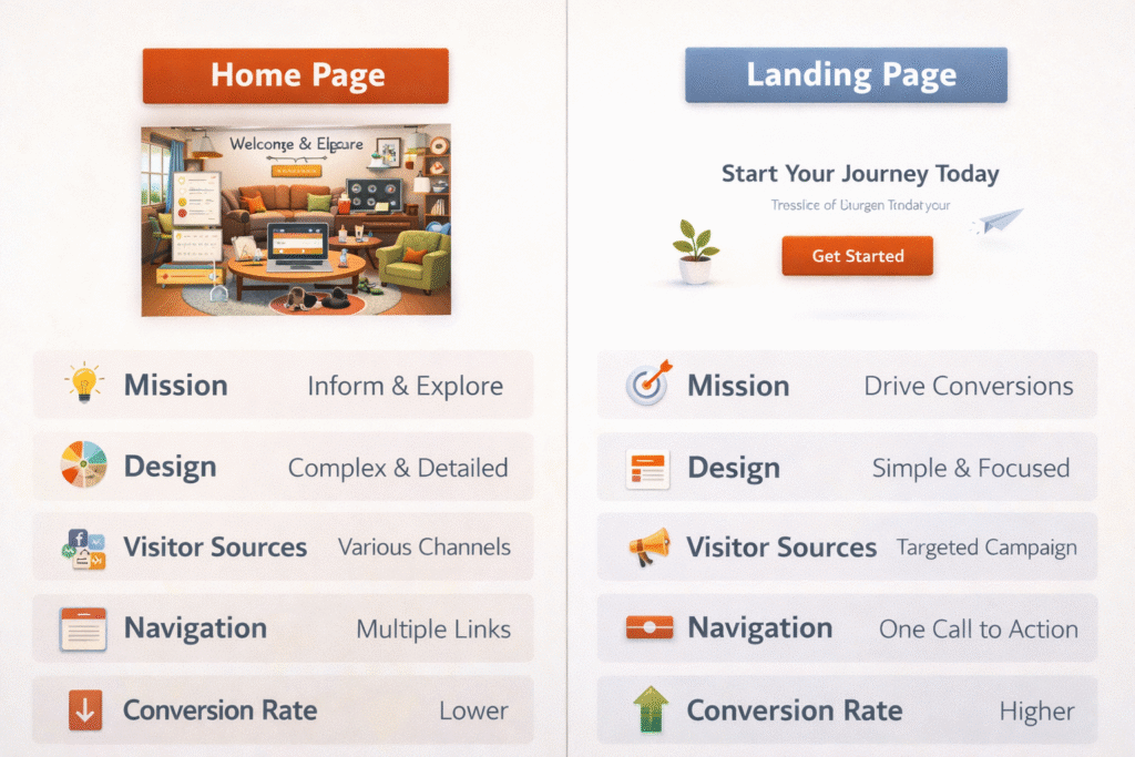 Home Page vs Landing Page Explained