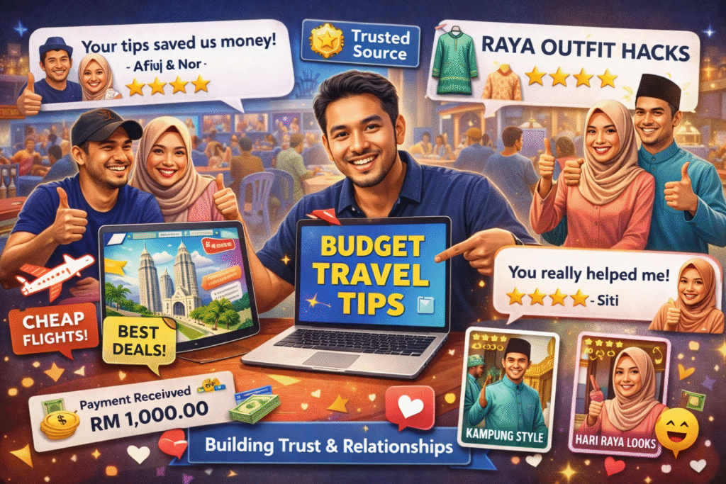 Build trust by offering valuable content such as free guides like “Budget Travel Tips for Malaysian Families” or videos like “5 Raya Outfit Hacks.” Showcase testimonials from local customers to create relatable social proof. Maintain regular updates so your brand feels like a dependable friend who shows up with teh tarik not just during sales periods.
