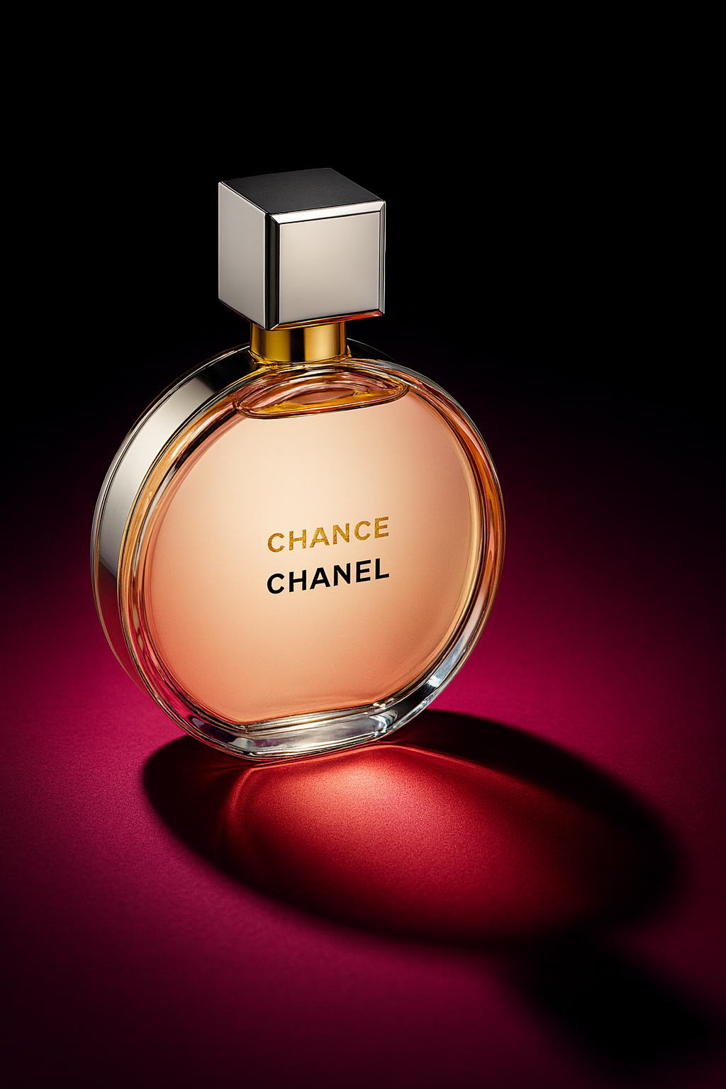 Create a Hyper-real commercial product photo featuring a [insert product type: e.g., perfume bottle, skincare item, watch, or jewelry] ,placed on a matte magenta paper surface against a deep black background.