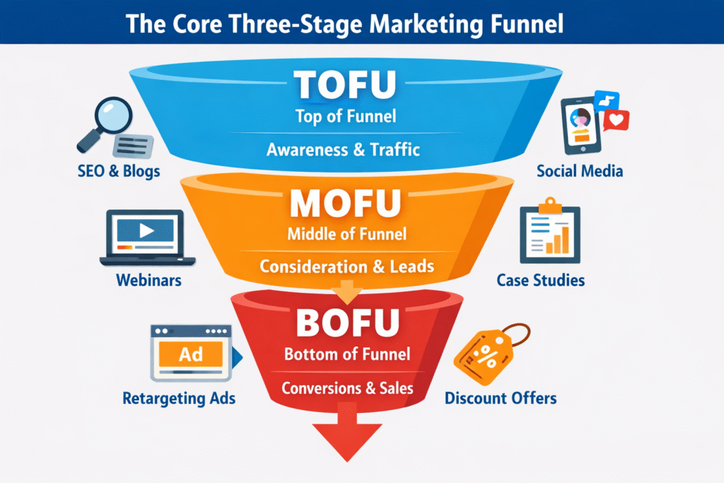 The Core Three-Stage Marketing Funnel: TOFU MOFU BOFU