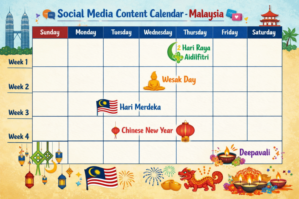 Randomly sharing memes, promos, and photos hoping for engagement is like throwing darts blindfolded. In Malaysia, the cultural calendar is essential Hari Raya, Deepavali, and Chinese New Year offer huge engagement opportunities. Avoid copying viral trends from abroad that don’t resonate locally. Build a content calendar centered around local festivals and aim for eighty percent value-driven content and twenty percent sales. Tools like Buffer or Later can help you stay organized. Businesses with clear strategies achieve three times more engagement, according to HubSpot’s 2025 report.