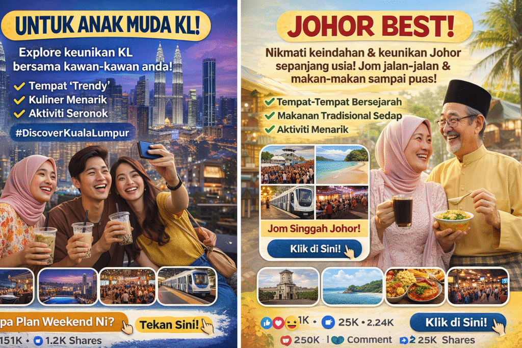 Trying to appeal to everyone is like serving one dish for all relatives at a wedding it won’t satisfy anyone. Millennials in Kuala Lumpur might enjoy pop culture memes, while Johor’s boomers prefer Facebook deals. The Department of Statistics Malaysia in 2025 revealed boomers contribute forty percent of consumer spending yet are often ignored by businesses. Use Facebook and Instagram Insights to discover your real audience, run polls like “Kopi O or Teh Tarik?”, and tailor your content. Sprout Social SEA 2026 found data-driven businesses grow followers five times faster.